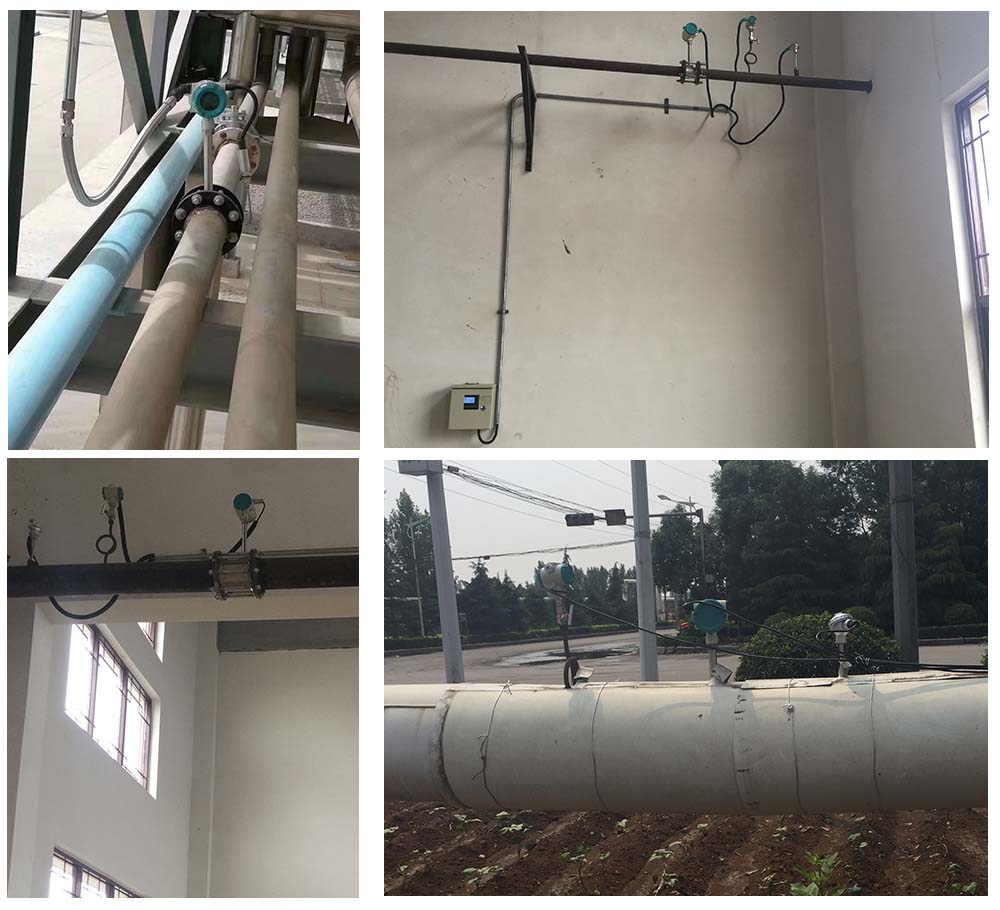 采用埋入压电晶体的涡街测速探头,插入大口径工业管道内,将卡门旋涡频率转换为与流量成正比的电流或电压脉冲信号或4~20mA电流信号。