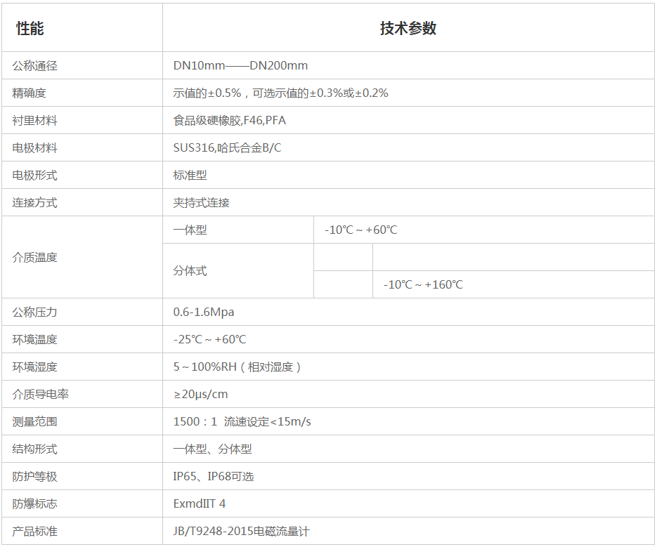1、 采用新型的卫生型衬里材料,防止了测量介质残余物在测量管中的堆积;